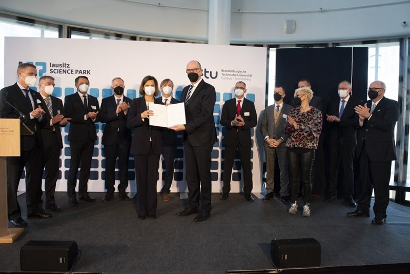 Ein Zusammenschluss aus den beiden Städten, Wissenschaftseinrichtungen wie der Fraunhofer-Gesellschaft, dem Deutschen Zentrum für Luft- und Raumfahrt und der Leibniz-Gemeinschaft sowie Unternehmen haben bei einem Festakt an der BTU eine Absichtserklärung unterzeichnet. Sie soll den Aufbau und Unterstützung des neuen Technologieparks besiegeln. Die Erklärung wurde an Ministerpräsident Dietmar Woidke (SPD) überreicht. Zu den Unterzeichnern aus der Wirtschaft gehören etwa die Deutsche Bahn, der Chemiekonzern BASF am Standort Schwarzheide, das Energieunternehmen LEAG sowie die Verteilnetzbetreiber MITNETZ STROM und MITNETZ GAS.